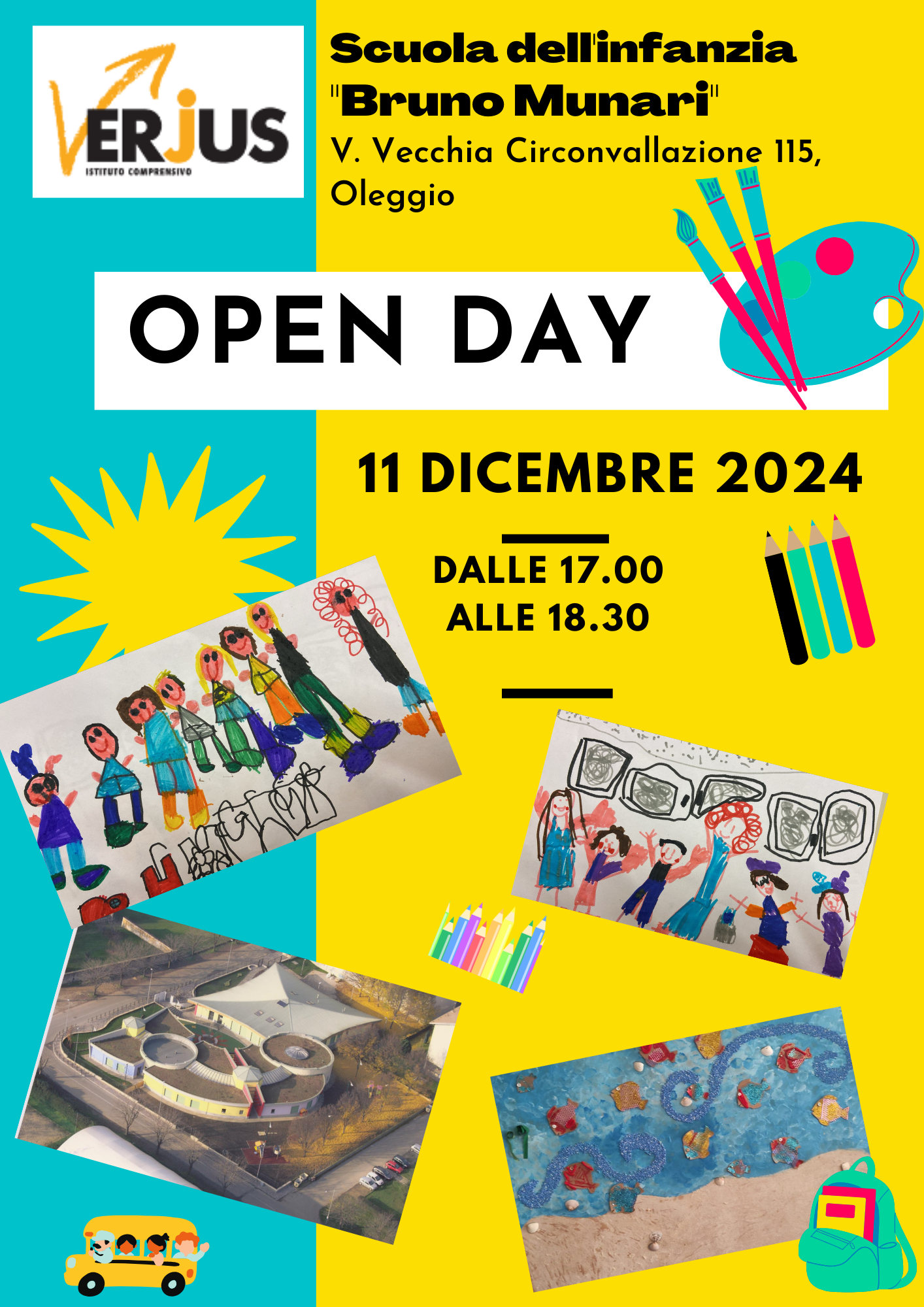 | mercoledì 11 dicembre | dalle 17 alle 18.30 | Infanzia Munari | Open day Munari 2024 |