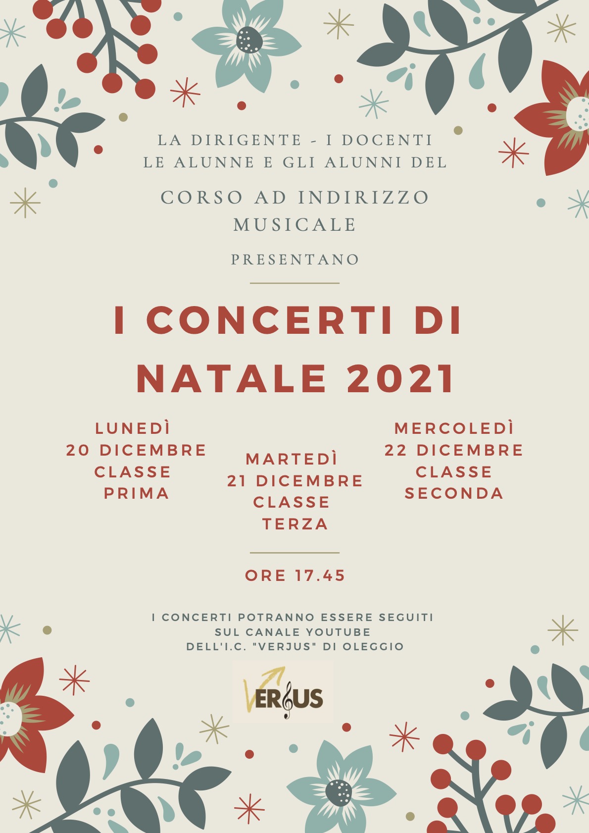 I concerti in presenza sono riservati ai genitori degli alunni nel rispetto delle norme Covid -19: Locandina Concerto di Natale 2021.jpg